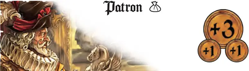 The Patron gets 3 gold coins from the bank, and the players next to him each get 1 gold coin from the bank.