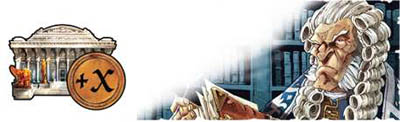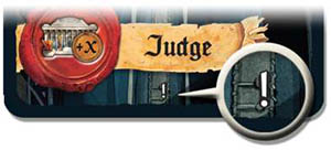 The Judge takes all the coins (fines) currently on the courthouse board. Clarification: If players have falsely claimed to be the Judge and must pay a fine, that fine is paid after the Judge's power is resolved, and therefore those fines will not be claimed by the Judge during this turn.