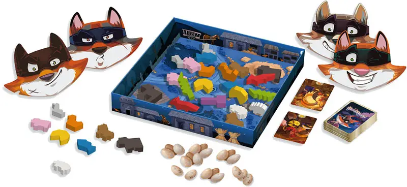 After shaking, all players cover their eyes with their Fox masks so no one can see anything. Then the player who shook the box removes the Lid and counts to three to start the round.
