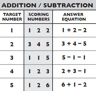The fun and flexibility of this game are in combining the three Scoring Numbers in the most creative ways to get the best answer.