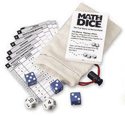 MathDice is a fun, educational game. The rules above describe competitive play. For your enjoyment, please feel free to relax the rules in any way that suits your group of players.