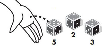 Then roll the three 6-sided Scoring Dice to establish three Scoring Numbers. In the example below, a 5, 2, and 3 are your Scoring Numbers.