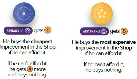 buys next to his card. He doesn't have a factory, but he'll get lots of points for high-value improvements, so be careful about which ones you let him have!
