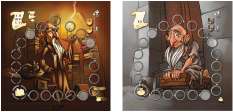 Other game boards, such as King's Service, score only at the end of specific turns witch are noticed by the parchment in upper left corner board.