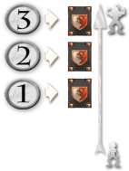 The same goes for the defeated knight, but with 5, 3 and 1 Chivalry Points coats of arms.