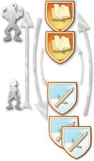 Then the player ranked 2nd proceeds in the same way, and so on until every player has taken a coat of arms. Then, those who chose a 0 Chivalry Point give it back, so that they can be reused in the next game turn.