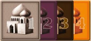 During the game each player takes possession of four palaces, one of each color. Each palace consists of one or several buildings. The larger the palace, the more points it yields at the end of the game.