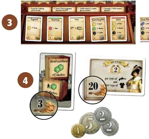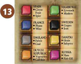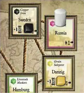 Choosing Sweden, Danzig, the Dutch Republic, Bohemia, and Denmark gives the player 1 Time counter, choosing Hamburg gives 2 Time counters.These Time counters are taken from the Time chart. They are taken always from the topmost row that has Time counters left