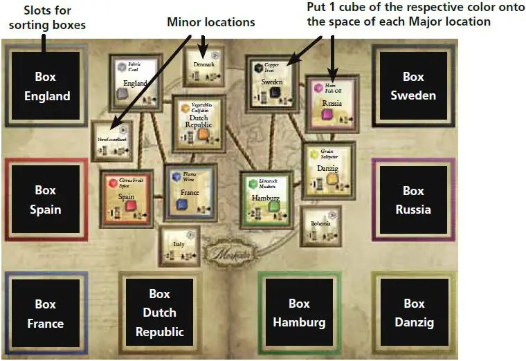 Depending on the travel location, new goods are placed on some or all Major locations. Each location always gets cubes of its own color.
