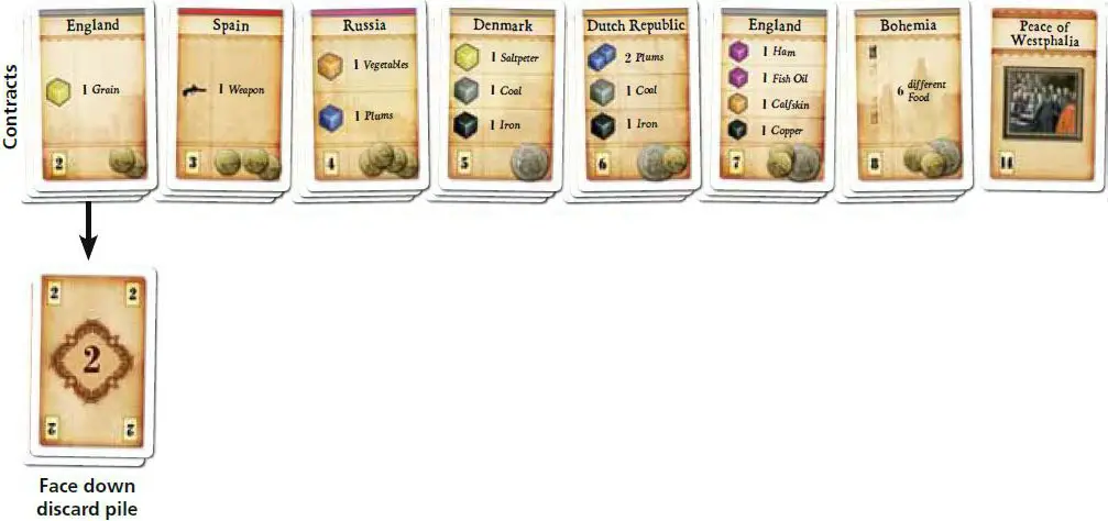 Turn the remaining value 2 Contracts face down to form the discard pile. (Those value 2 Contracts will not be needed for the rest of the game).