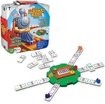 The player who has the highest double domino in their hand begins the game by placing that domino in the center of the train hub. If that player has another domino in their hand with one end that matches the center double domino they can also begin their personal train on the same turn.