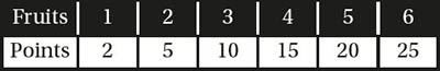 3 Harvest: 0 to 25 victory points depending on the number of different fruits in each Gallery: