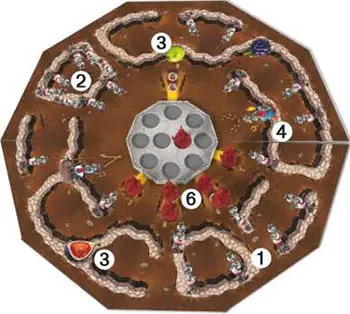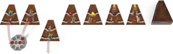 4 Draw the first 7 Anthill tiles and line them up on the table, face up. The first tile is the one that is the furthest away from the draw pile.