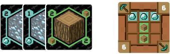 For example, if a Craft Card has 3 Diamond and 2 Wood icons on it, you must turn in Resource Cards equal to 3 Diamonds and 2 Woods to craft it. If your resource cards don't match the required resources exactly, you may overpay for the Craft Card but you will not receive back the difference.