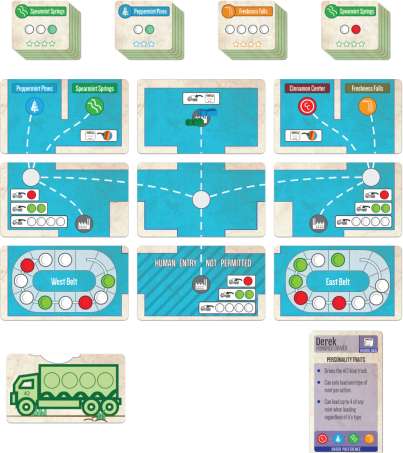 The player may place their truck on any space connected by a road to the space on which their truck is currently located. The AI will always choose the shortest path, and will only move when required to do so via their current motivation (see "AI Motivations").