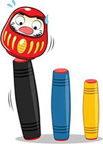 The Mokuru is standing on one end. By knocking slightly on its upper part, there is a rotation, which is called a flip. The player must be able to stop the Mokuru standing to validate this rotation.