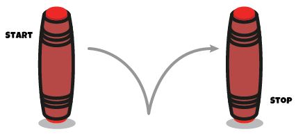 Here, to perform a flip, the player knock in orange party noted "Start". The Mokuru is doing 1 flip and must be stopped standing in its noted position "Stop". Some figures require 2, 3 or 4 rotations or more.