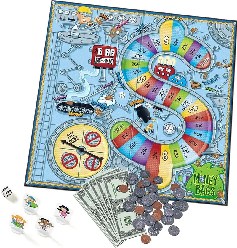 If the player spins "Money Bags", he or she takes the amount earned from the bank using any coins. However, instead of keeping the money, he or she must put it in the "Money Bags" pot on the board.