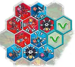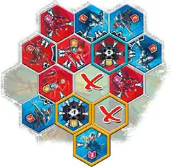 A tile placed on a Monolith segment does not receive any additional protection. During Battle, it may happen that the tile located within one of the unfolded Monolith segments is destroyed, leaving an empty segment.