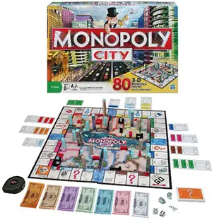 Buy all of the districts in two color groups, and the Monopoly Tower - which doubles the rent value of all your districts - could be yours! Enter The Exciting World Of Monopoly City!
