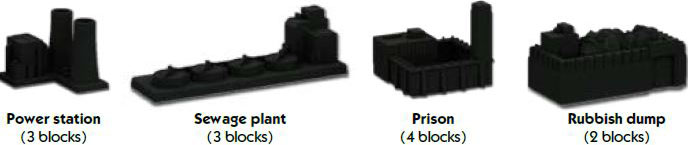 If another player builds a hazard in your district, residential blocks in that district become worthless and do not count towards its rent value.