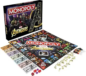 In this version of Monopoly, instead of buying properties, you'll draft heroes for your team. Heroes come in color sets, except for Winter Soldier and Black Panther.