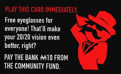If the card you choose directs you to take money from the Community Fund, you must do so immediately and return the card to the bottom of the deck; if not, you may play the card or keep it for later.