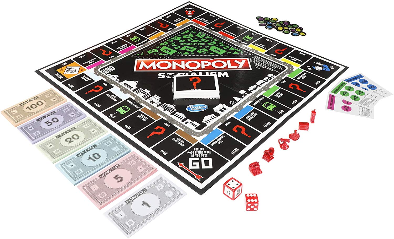 When you pass GO, we all collect M50 from the Bank. This is our living wage. Players must immediately pay at least M5 to the Community Fund.