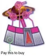 To buy it, pay the price shown on the outer board space, then put one of your Bases on to the linked hexagonal space on the planet itself. Make sure the Base has your symbol face up to show you own it!