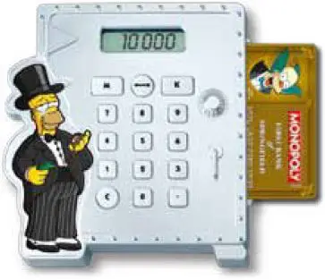 Passing GO: The banker inserts your card into the unit's left slot and presses this button to add M2m.