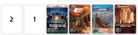 Place your Warlord card face up beside your City. Place your Cultural Policy cards face down beside your City: this is your Culture deck. You may look at the cards in your Culture deck at any time.