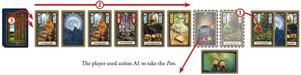 If you took a card from the Deep Forest (Cards 1 through 6), you first have to close the gap in the Forest by sliding the cards together.
