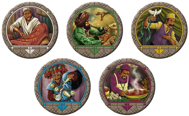 In Morocco, players represent ancient families of artisans - snake charmers, water sellers, rug merchants, magicians, and food sellers - carrying on the ancient traditions of the world famous Jemaa el-Fna market square in Marrakech, Morocco.