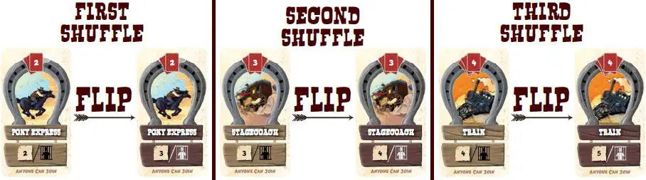 To form the Sheriff's hand for each Robbery, draw cards from the deck equal to twice the number required for the Robbery: 4 for Pony Express, 6 for Stagecoach, 8 for Train.