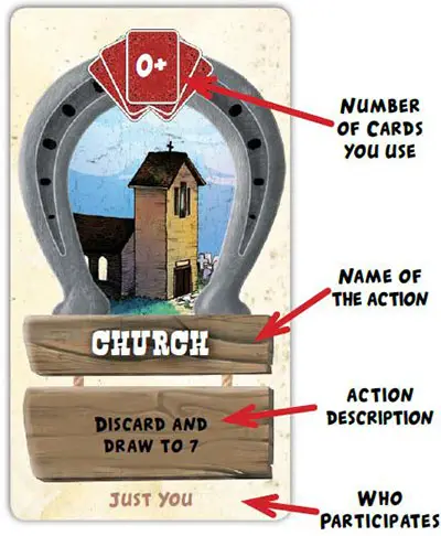 When playing a two-player game, the Sheriff shows up to defend the town against the pair of greedy scoundrels. The Sheriff participates in every Robbery and must be beaten to score points.