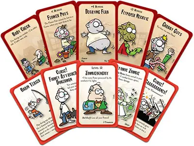 If you're blending Munchkin Zombies with other Munchkin sets, the Undead from those sets can join the horde, too! (Clerics from the original Munchkin get bonuses against all Undead monsters, even if those Clerics are zombies themselves).
