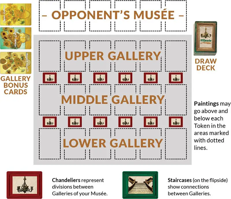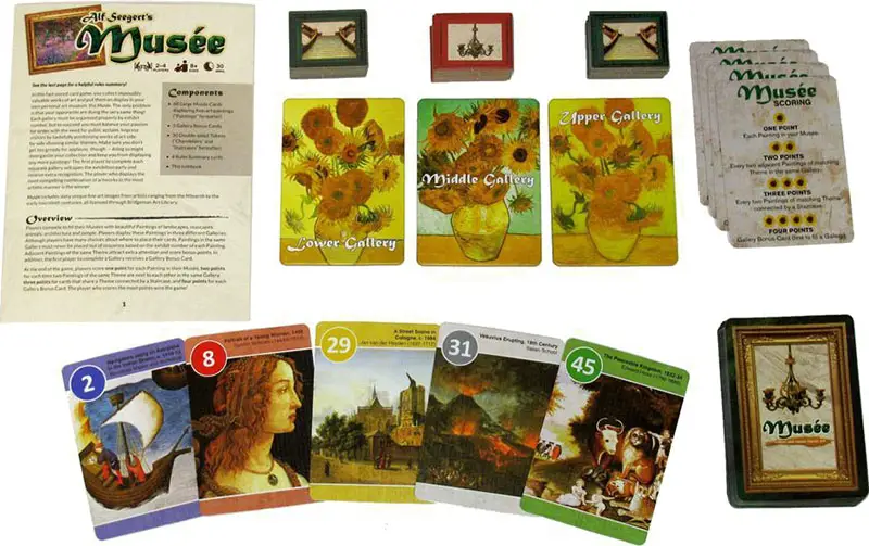 Players compete to fill their Musees with beautiful Paintings of landscapes, seascapes, animals, architecture, and people. Players display these Paintings in three different Galleries.