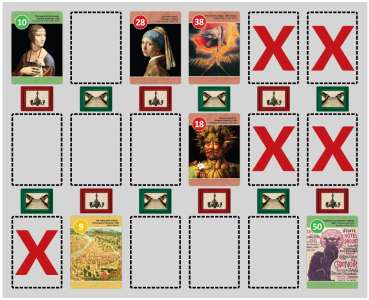 Adjacent Paintings of the same Theme attract extra attention and score bonus points. In addition, the first player to complete a Gallery receives a Gallery Bonus Card.