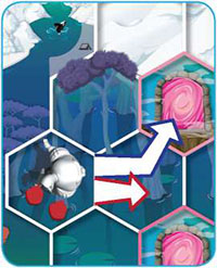 Move without carrying apples or gems: Move your Seeker up to 2 spaces. Stop if you move your Seeker onto a space occupied by an opponent's Seeker.