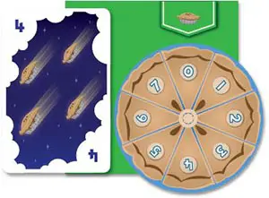 The attacking and defending players each use separate Pie Fight Dials to secretly determine the number of pies to throw at one another. 0 to 7 pies may be chosen by rotating the numbers on the dial to line up below the pie logo. The number must not exceed a player's total pies shown on the Pie Track. It is acceptable to throw 0 pies.