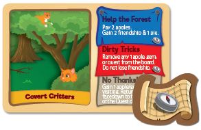 Gaining Friendship: When you place an apple or gem on a space occupied by an opponent's Seeker(s), immediately gain 1 friendship for each resource placed on that space. No friendship is gained by placing resources on spaces occupied by your own Seekers.