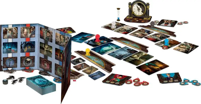 Collect any psychic cards that were not placed in sleeves and return them to the box, together with the character, location and object progress boards.