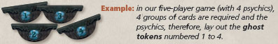 Place 1 ghost token per psychic in the centre of the table, numbered side up. Return the unused ghost tokens to the box.