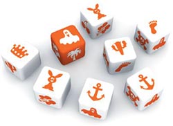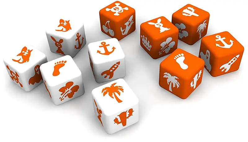 At the same time, all players search for a symbol appearing on at least one orange and one white die.