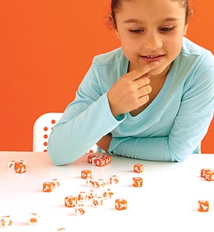 Take all 36 dice and separate the orange and white. A second player then rolls all the orange dice next to the white dice.