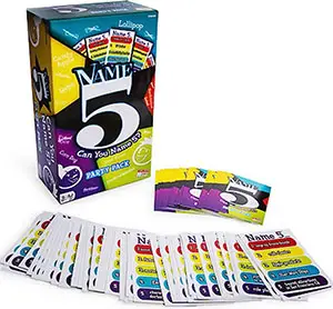 Note: The Name 5 Card Game Cards may also be incorporated into the Original Name 5 board game to add more fun!
