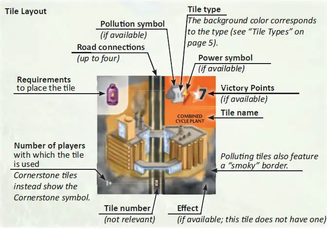 Power: You lose 5 VP if you do not have at least one Power-generating tile in your City (showing the Power symbol).