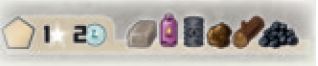 - Raw Goods (pentagonal) are produced by Resource (grey) tiles.