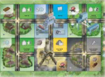 Residential (green) tiles usually have a Victory Point value and no further effect. Your goal is to group as many of them together (via Road connections between them) to form so-called Neighborhoods.