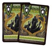 The Charon cards present an illustration of the character on a green background. "These cards bear no number.